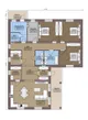 Дом имеет продуманную планировку, которая позволяет максимально эффективно использовать каждый квадратный метр. Общая площадь составляет 158,26 м², а площадь застройки — 160,16 м². Благодаря этим параметрам вы сможете обустроить все необходимые помещения для комфортной жизни. Три спальни обеспечат комфортный отдых всей семье, а две ванные комнаты создадут дополнительное удобство.
